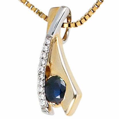 Anhänger 8k (333) Gelbgold mit Blue Saphir und weißen Zirkonia