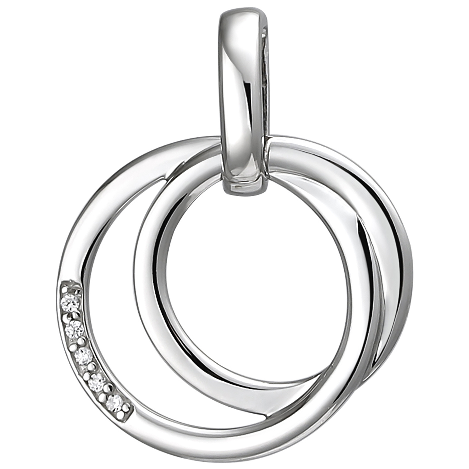 Moderne Eleganz in plastischem Ring-Design ist dieser Anhänger aus rhodiniertem 925 Sterling Silber sowie mit fünf facettierten Zirkonia in weiß verziert. Maße: Höhe ca. 19,4 mm, Breite ca. 17,6 mm, Tiefe ca. 1,8 mm, Innenmaße der Öse ca. 5 mm x 3 mm, Gewicht ca. 2,0 g * Der Artikel ist anlaufgeschützt (rhodiniert) * Bitte beachten Sie die Maße! Auf dem Foto kann der Artikel größer wirken*. Lieferung erfolgt ohne Kette.
