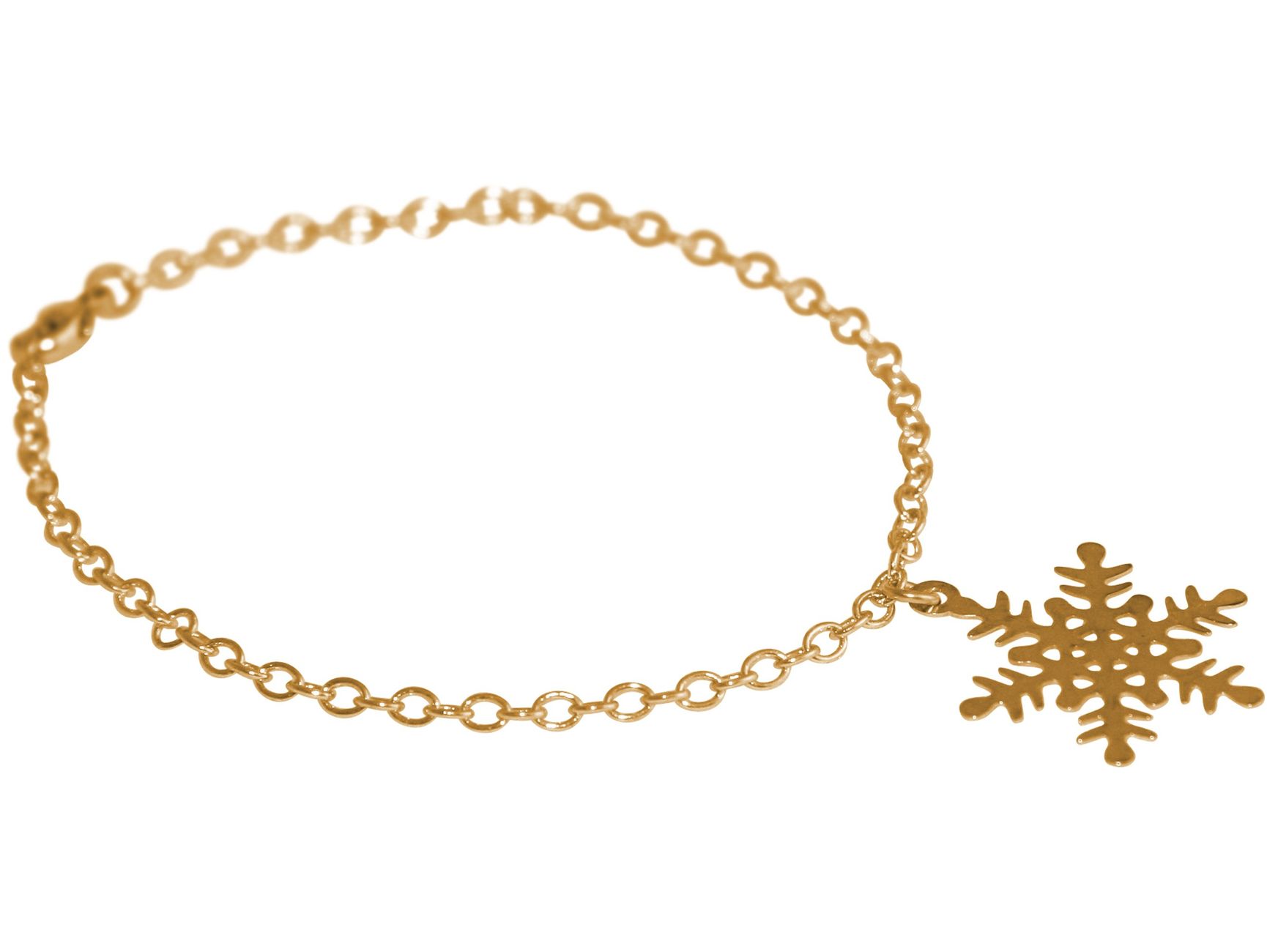 Winterliches Armband aus 925 Sterling Silber/vergoldet mit einem vergoldeten Schneeflocken-Anhänger. Das Armband verfügt über einen Karabinerverschluss. Maße: Länge ca. 18 cm, Durchmesser Anhänger ca. 2 cm.