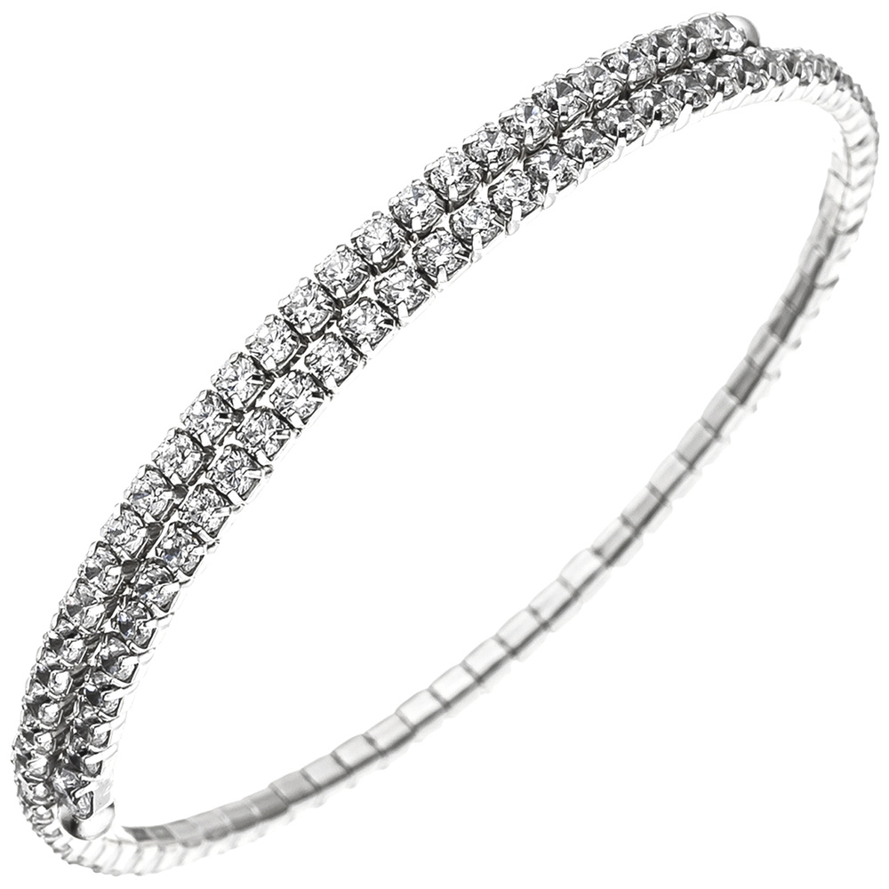Armreif flexibel 925 Sterling Silber mit 96 Zirkonia weiß