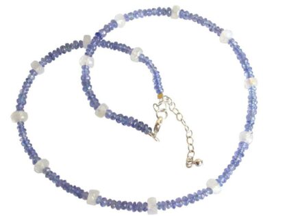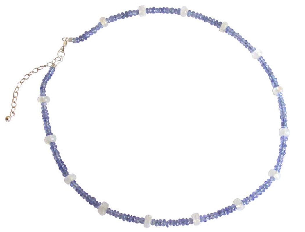 Collier 925 Sterling Silber mit Tansaniten und Mondsteinen weiß