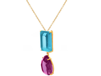 Collier 925 Sterling Silber/vergoldet mit Blautopas und Amethyst lila