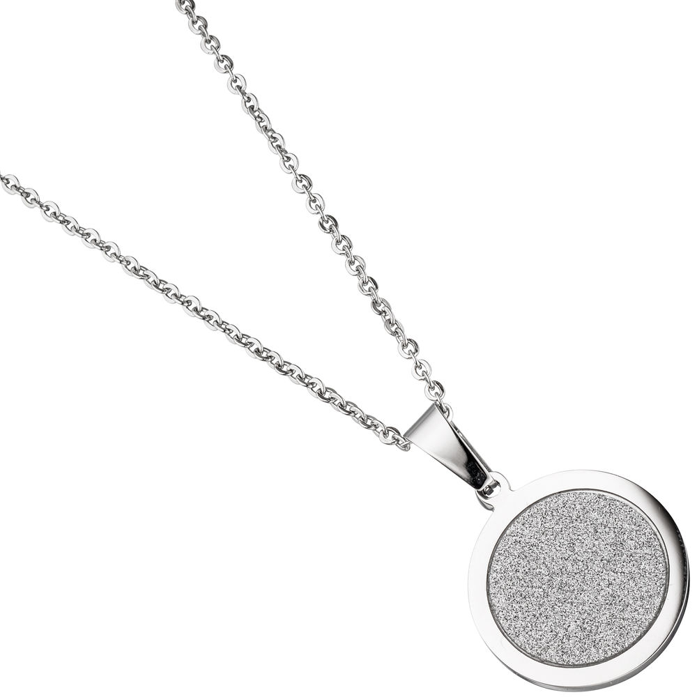 Collier mit Anhänger rund Edelstahl und Glitzereffekt