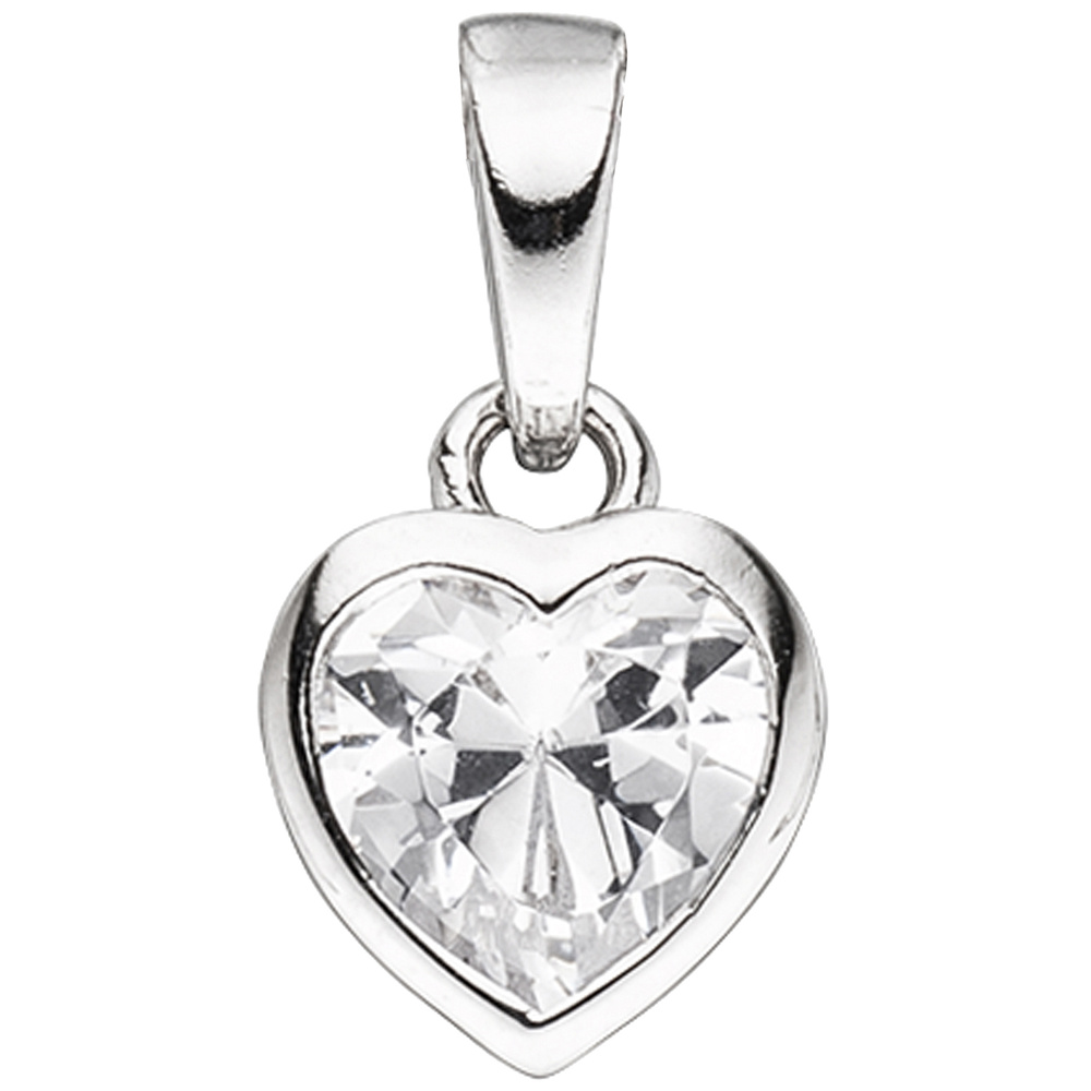 Bezauberndes Kinder-Schmuck-Set mit Anhänger “Herz” aus rhodiniertem 925 Sterling Silber und ist besetzt mit einem facettierten Zirkonia in weiß. Maße: Höhe ca. 8,9 mm, Breite ca. 7,4 mm, Tiefe ca. 3,7 mm, Innenmaße der Öse ca. 4,1 mm x 2,6 mm, Gewicht ca. 0,9 g.