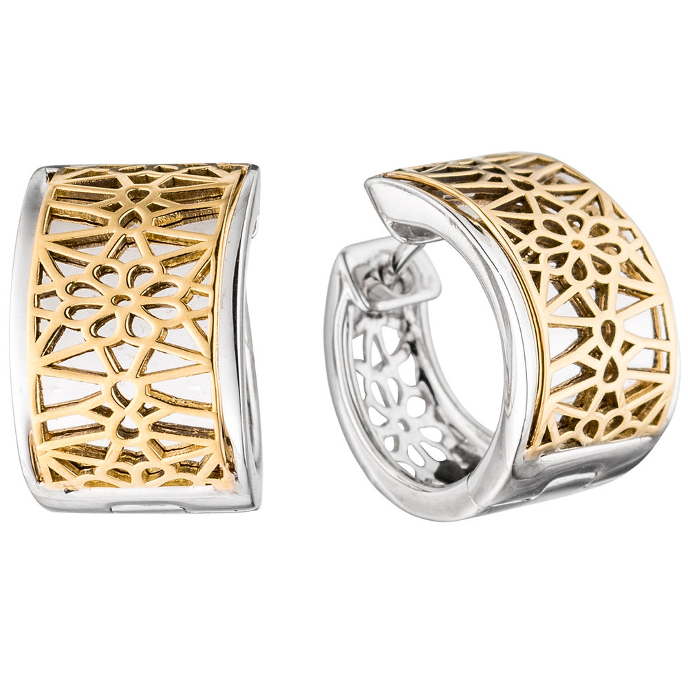 Creolen 925 Silber mit abstraktem Blumenmotiv 750 Gelbgold