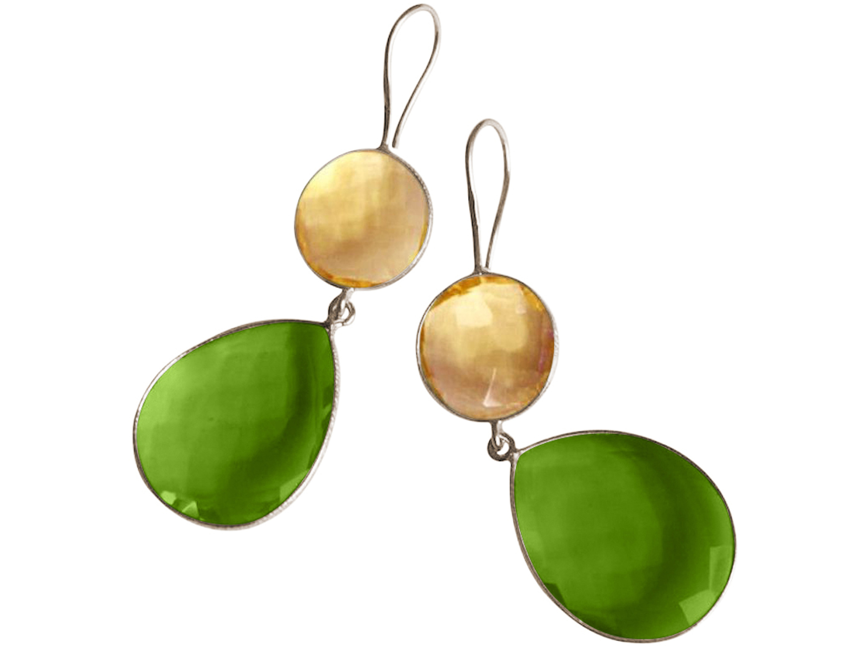 Ohrhaken 925 Sterling Silber mit 2 Citrinen und 2 Peridoten