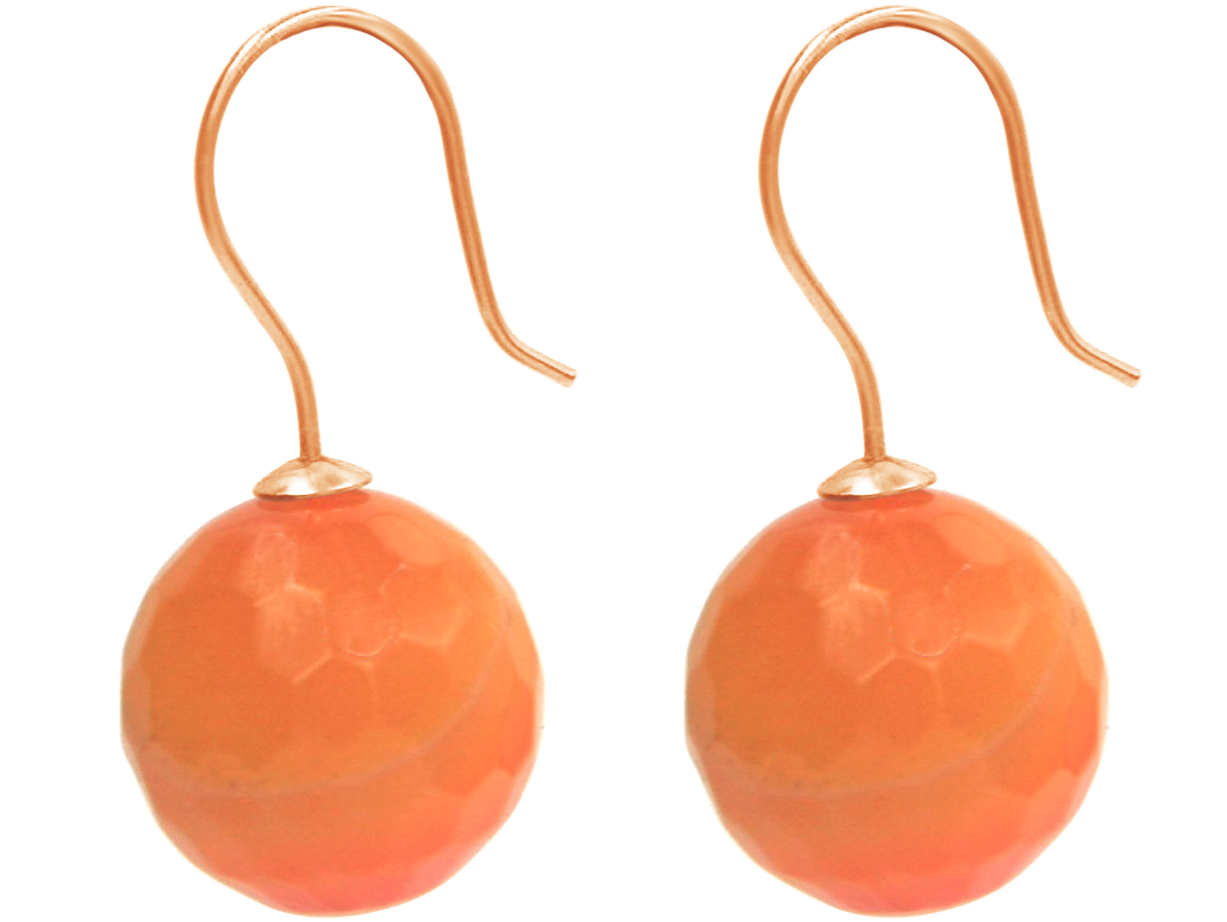 Eine natürlich elegante Kreation sind diese Ohrhaken aus rosévergoldetem 925 Sterling Silber mit je einer facettierten Karneol Kugel. Maße: Länge ca. 3 cm, Breite ca. 1,5 cm.