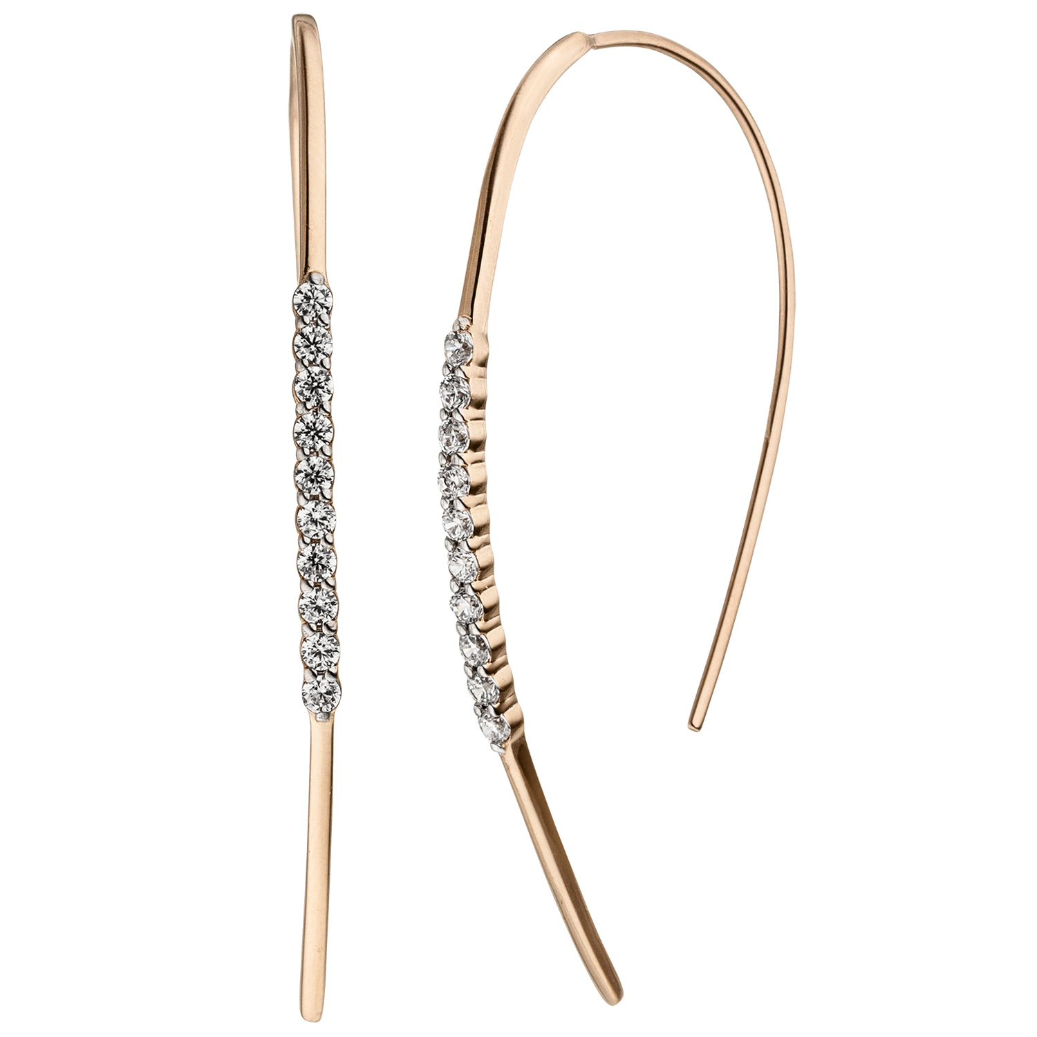 Ein modern attraktives Accessoire sind diese Ohrhaken aus rotvergoldetem 925 Sterling Silber sowie verziert mit 20 facettierten Zirkonia in weiß. Maße: Höhe ca. 51,2 mm, Breite ca. 2,2 mm, Gewicht ca. 3,4 g * Bitte beachten Sie die Maße! Auf dem Foto kann der Artikel größer wirken*.