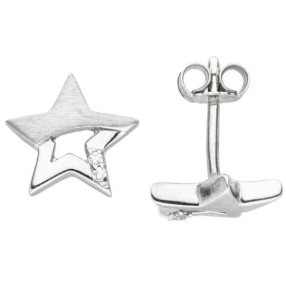 Kinder Ohrstecker “Stern” 925 Sterling Silber/teilmattiert mit 4 Zirkonia weiß