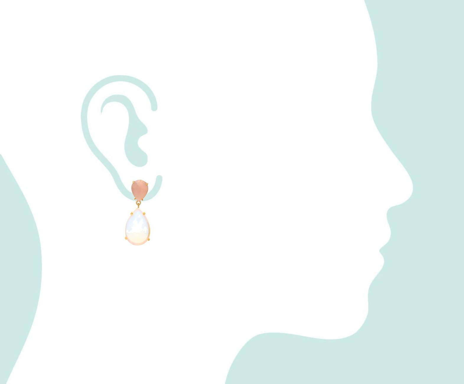 Ein bezaubernd schönes Naturprodukt sind diese Ohrstecker aus vergoldetem 925 Sterling Silber mit je einem Chalcedon in rosa sowie je einem Bergkristall. Die Edelsteine sind Tropfen facettiert. Maße: Länge ca. 5 cm, Breite ca. 2 cm.