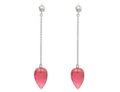 Modisch elegante Ohrstecker mit Kettchen aus 925 Sterling Silber mit je einem Tropfen facettieren Turmalin in pink. Maße: Länge ca. 6 cm, Breite ca. 2 cm.