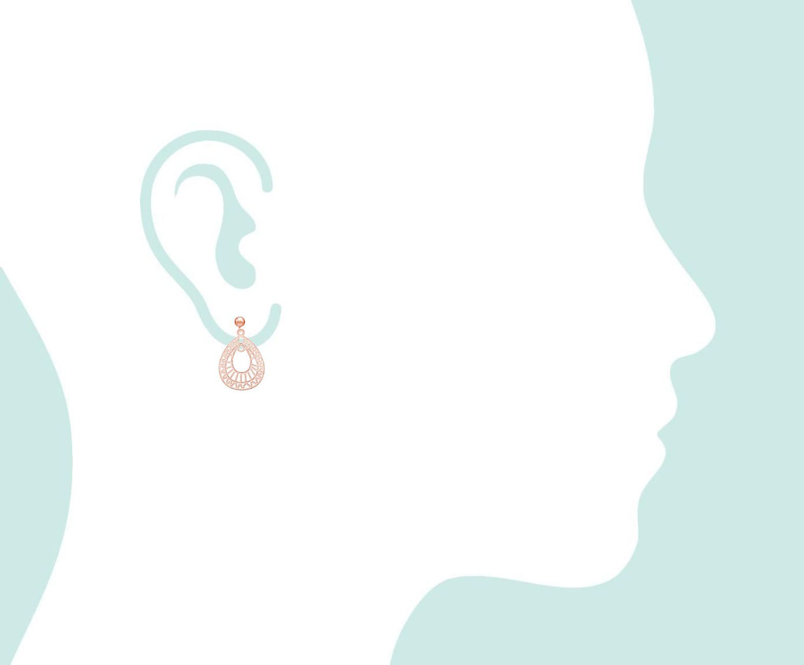 Attraktiv designte Ohrstecker in Tropfen-Optik mit kreativem Dekor aus rosévergoldetem Silber. Maße: Länge ca. 3,5 cm, Breite ca. 2 cm.