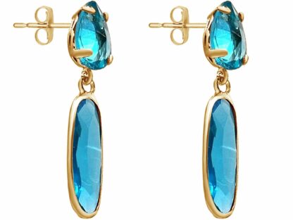 Vergoldete Ohrstecker mit 4 Blautopasen in Tropfen und oval Schliff.