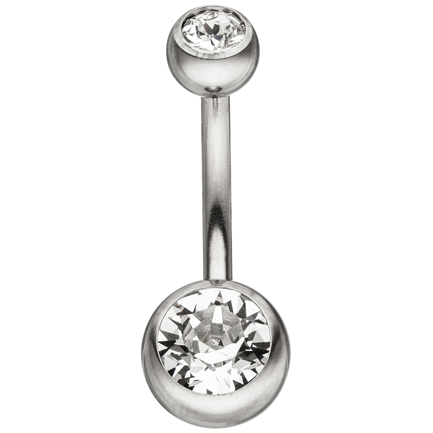 Bauchnabel-Piercing Edelstahl mit Kristallsteinen weiß