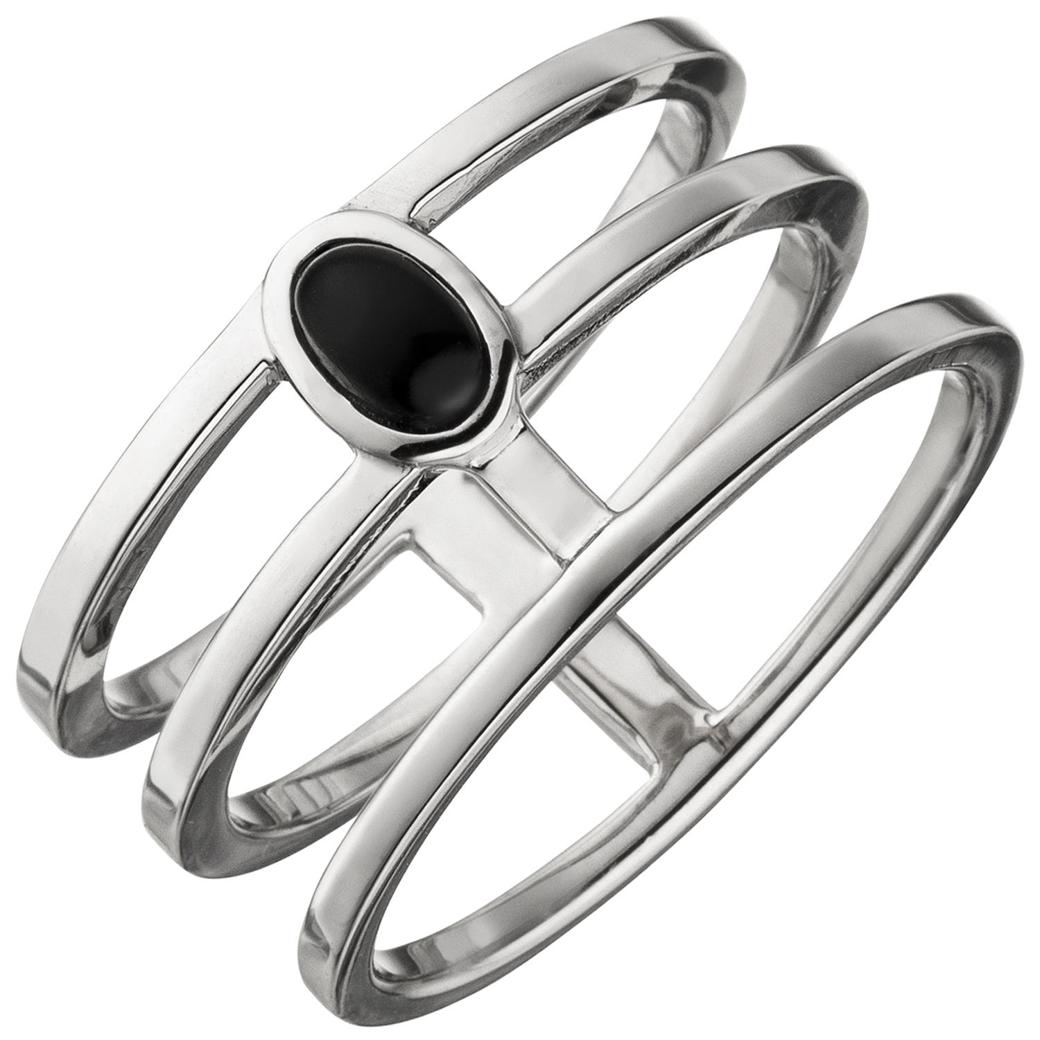 Ring 3-reihig 925 Sterling Silber mit Onyx schwarz