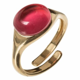 In wunderschöner Optik designter Ring aus 925 Sterling Silber mit einem Fuchsia-Quarz Cabochon in rot. Der Ring ist größenverstellbar. Maße: Fuchsia Quarz ca. 10 mm.