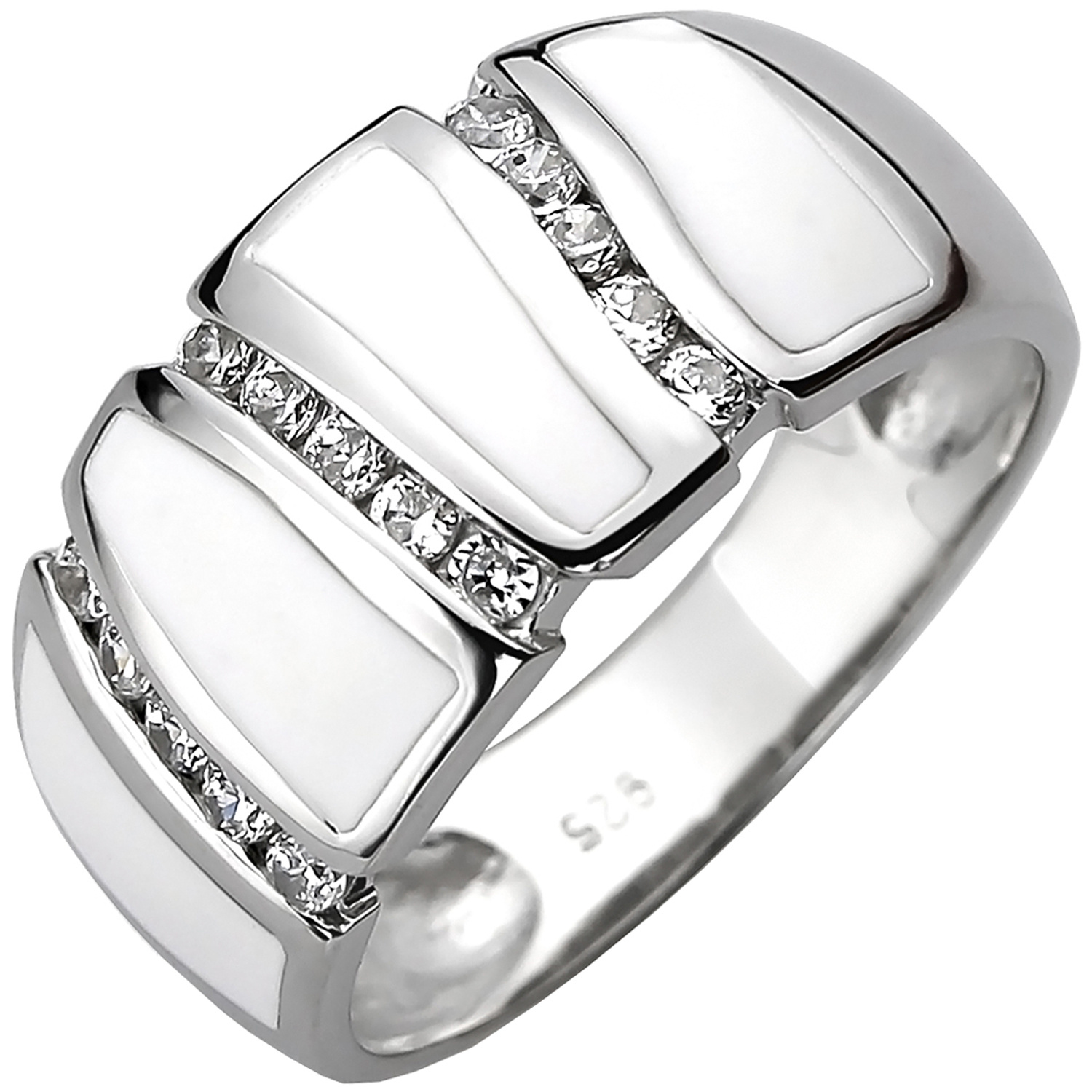 Ring 925 Sterling Silber mit Zirkonia und Emaille weiß