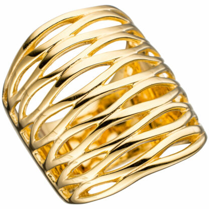 Dieser exquisit designte Ring in abstrakter Netzoptik aus vergoldetem 925 Sterling Silber wird Ihr Repertoire an edlen Accessoires erweitern. Maße: Gewicht ca. 10,2 g, Breite ca. 24,6 mm, Tiefe ca. 3,6 mm.