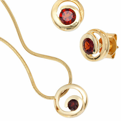 - Einem attraktiv eleganten Anhänger in 8k (333) Gelbgold in apart und modern gestylter Rundfassung mit einem intensiv rotem Granat rund facettiert. Maße: Durchmesser 14,3 mm, Tiefe 3,3 mm. Lieferung erfolgt ohne Kette.